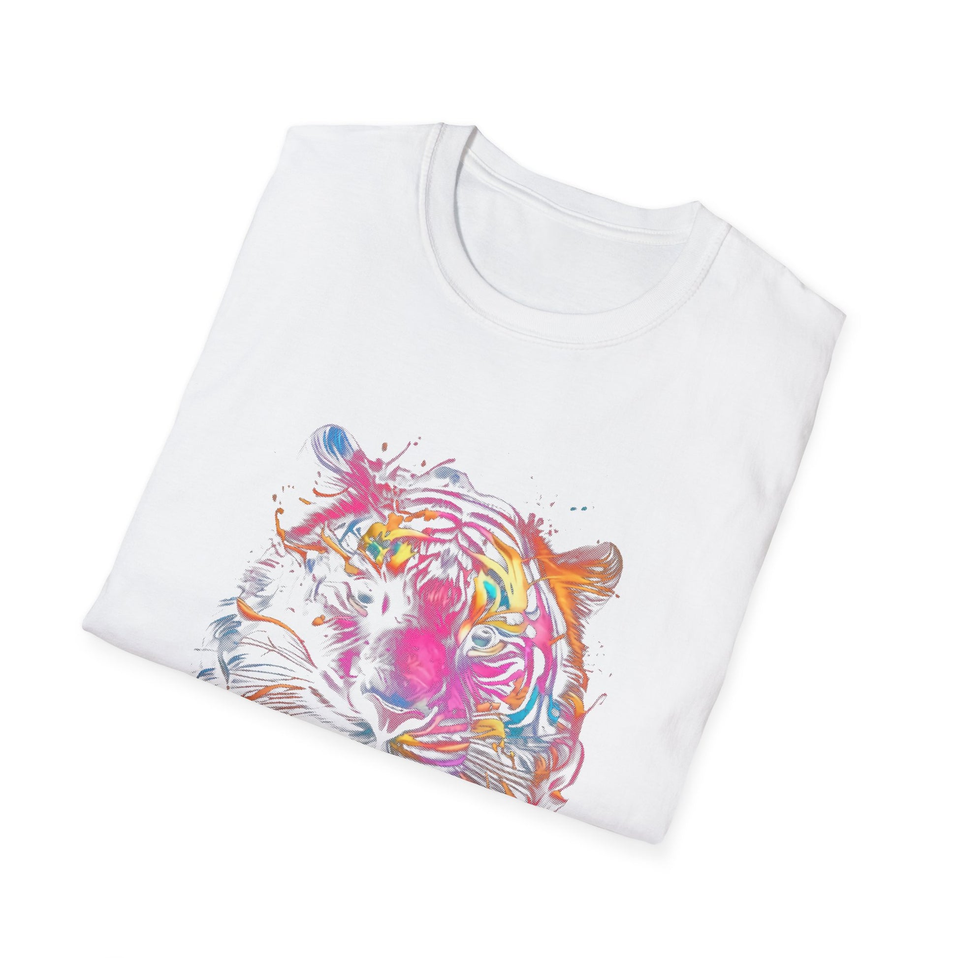 Colorful Tiger Graphic T-Shirt, Unisex Softstyle Tee, Animal Lover Gift, Nature Lover Apparel, Eco-Friendly Fashion, Summer Casual Wear