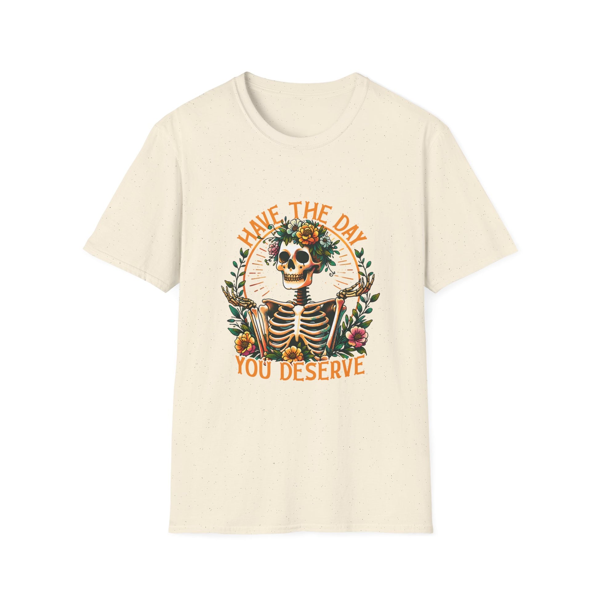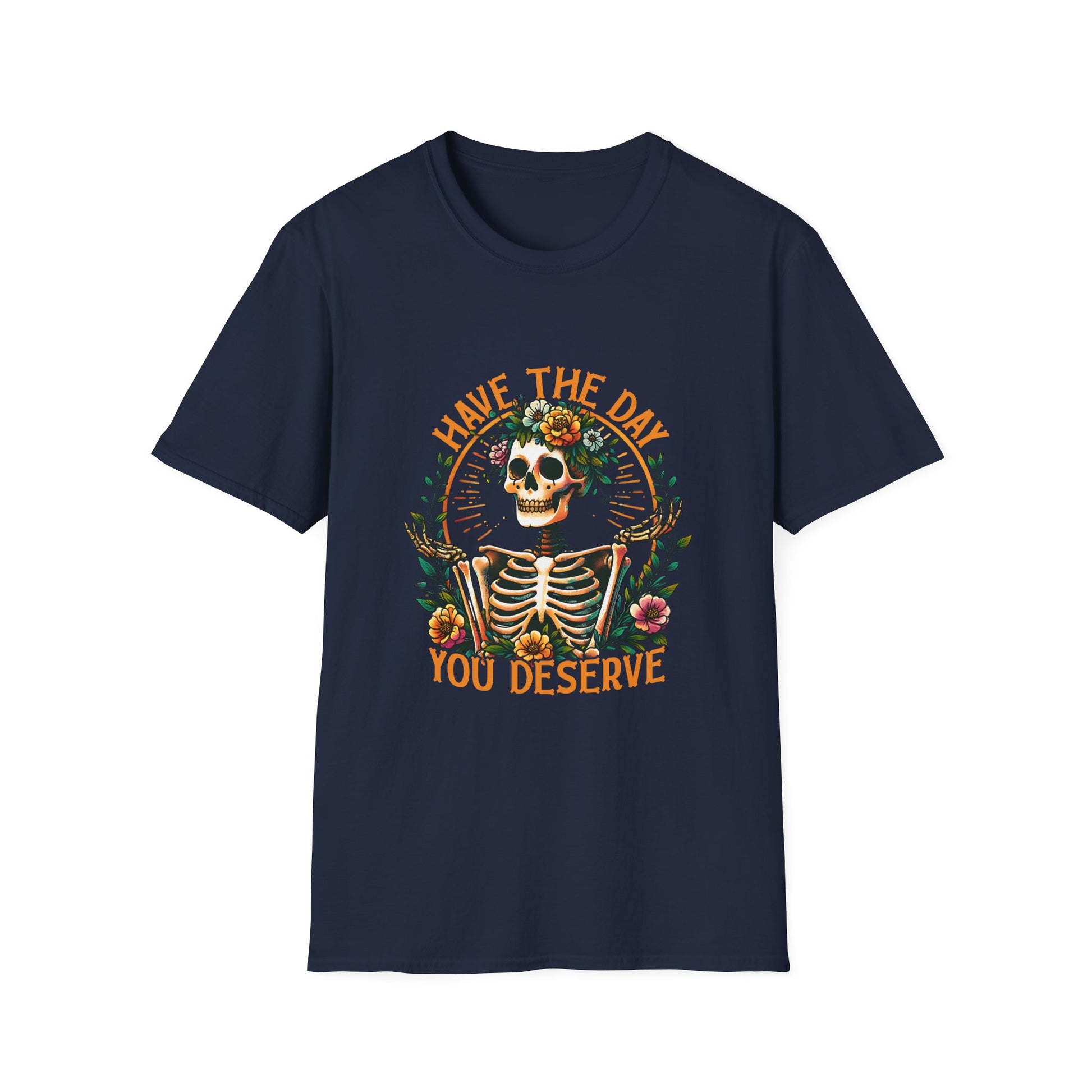 Day You Deserve Skeleton T-Shirt, Unisex Graphic Tee, Casual Halloween Top, Floral Skull Shirt, Perfect Gift for All Occasions