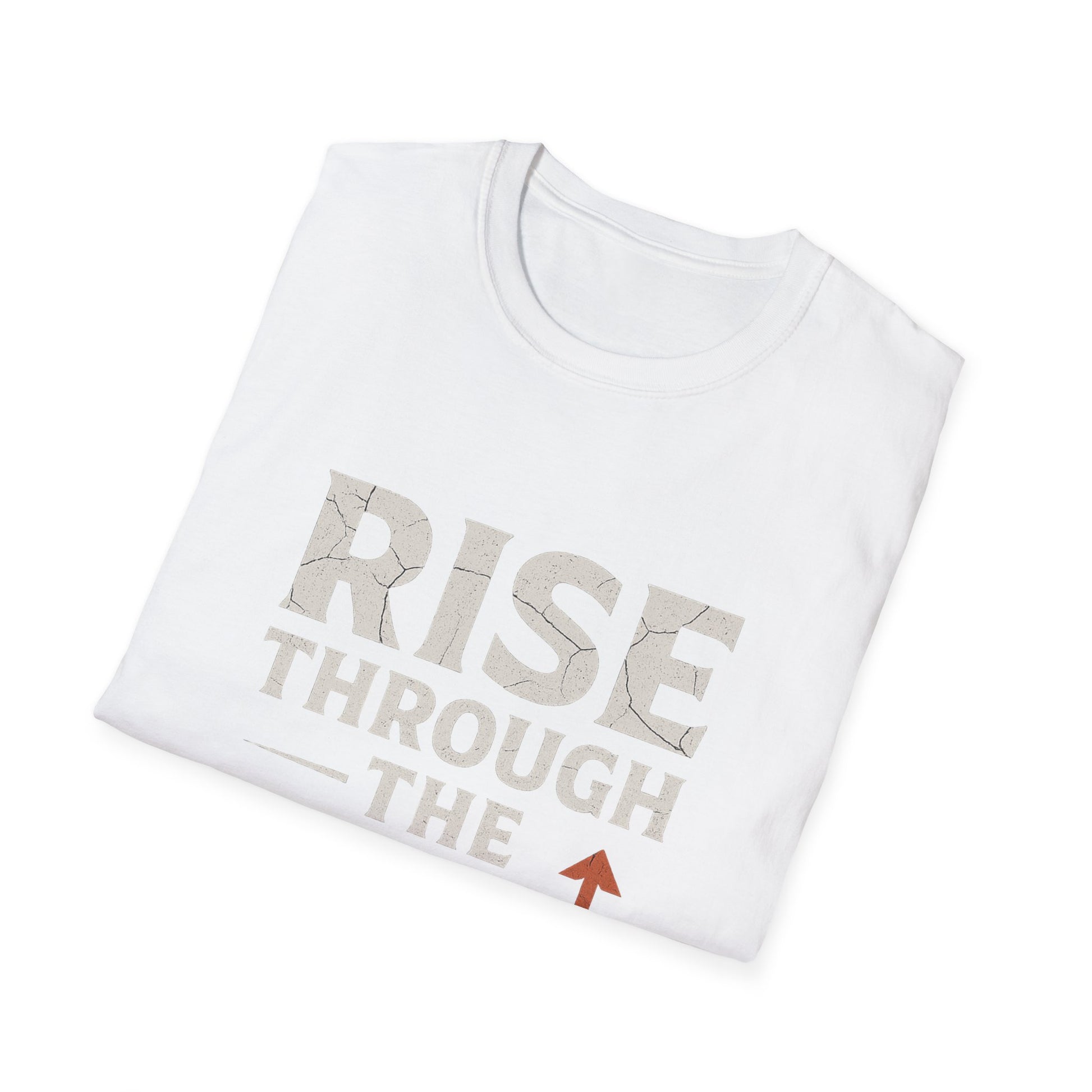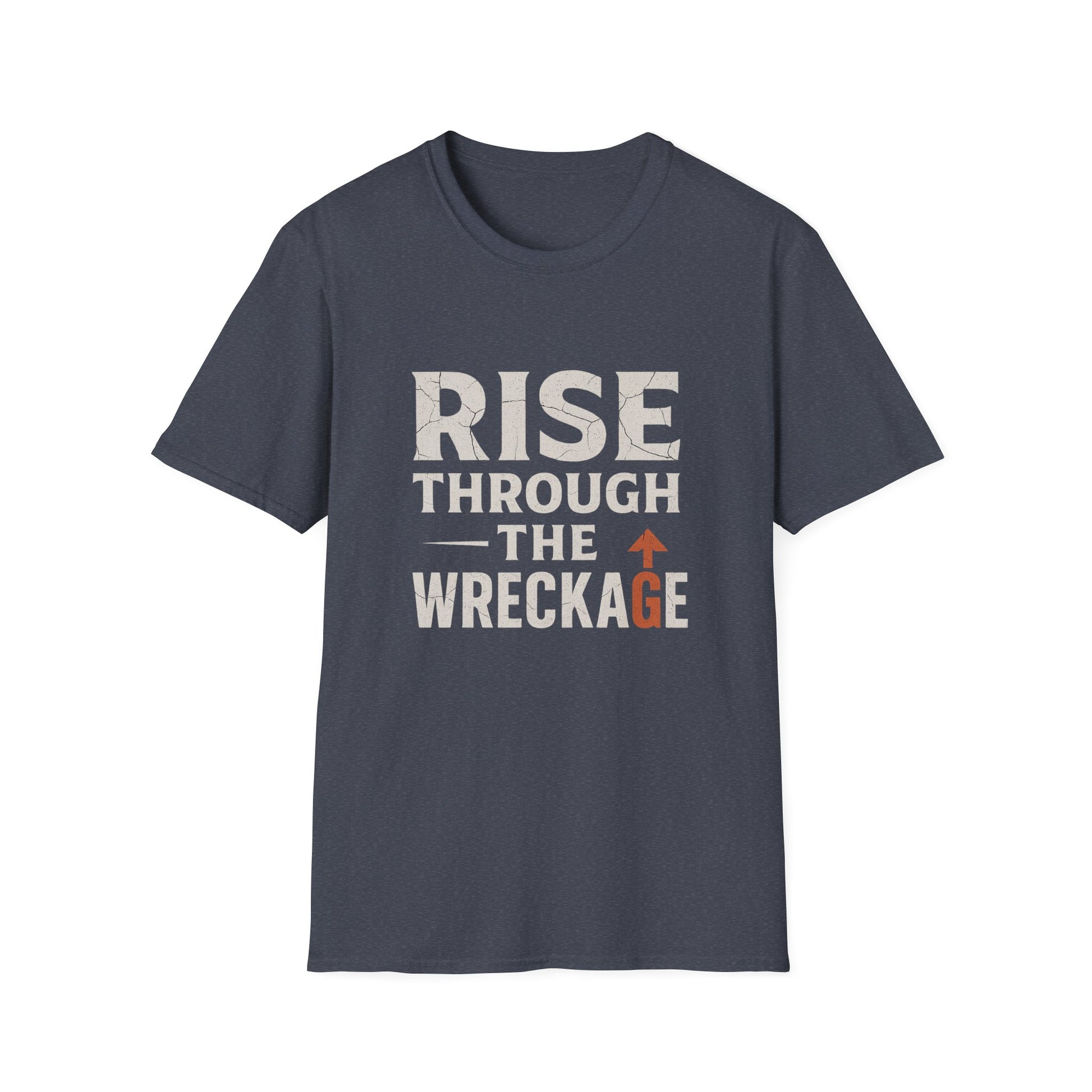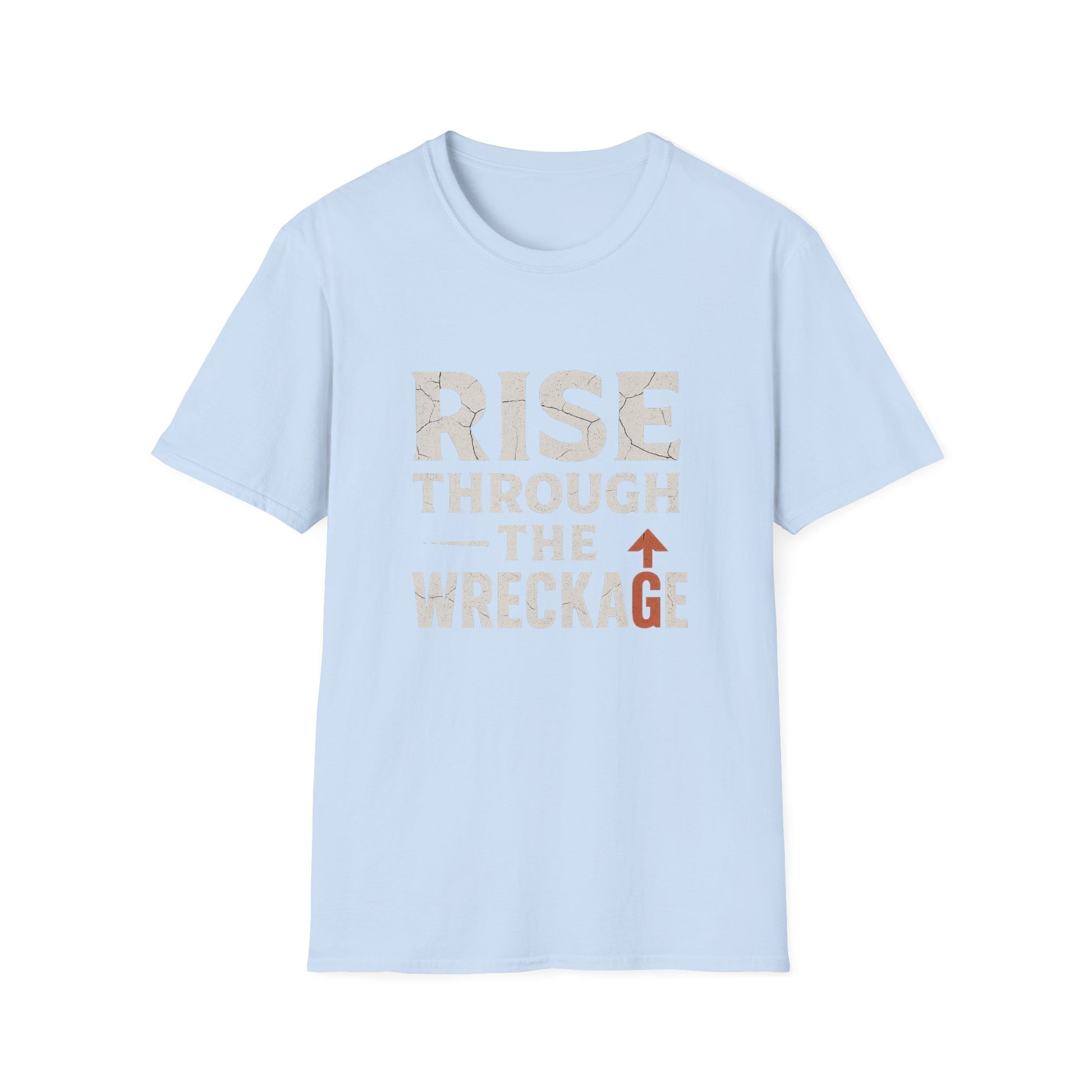 Inspirational Unisex Softstyle T-Shirt - Rise Through the Wreckage, Motivational Gift, Casual Wear, Workout Shirt, Uplifting Message Tee