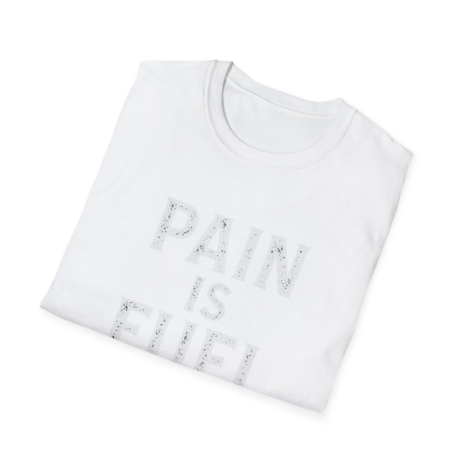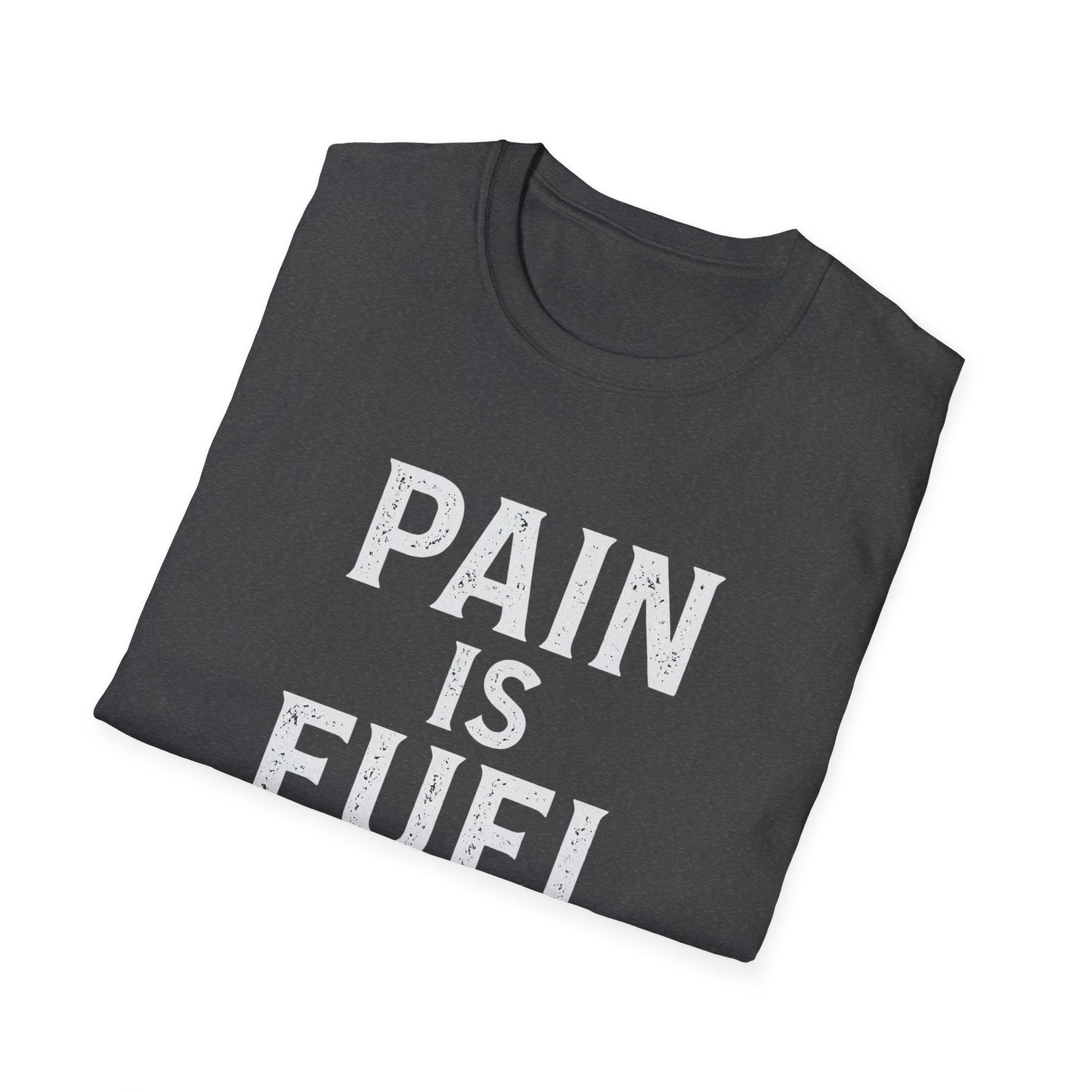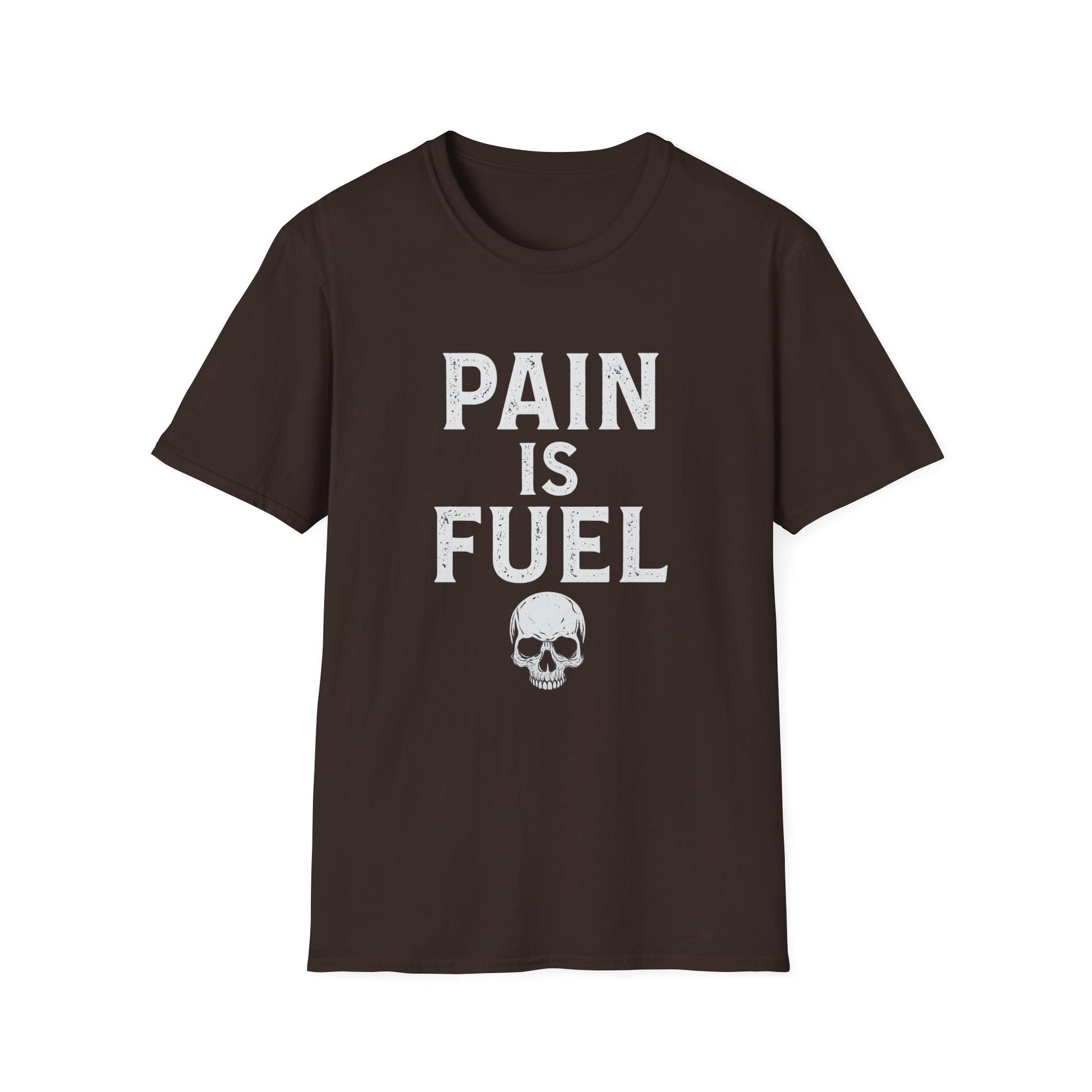 Motivational Skull T-Shirt, Unisex Softstyle Tee, Workout Apparel, Fitness Gift, Casual Wear, Pain is Fuel Design