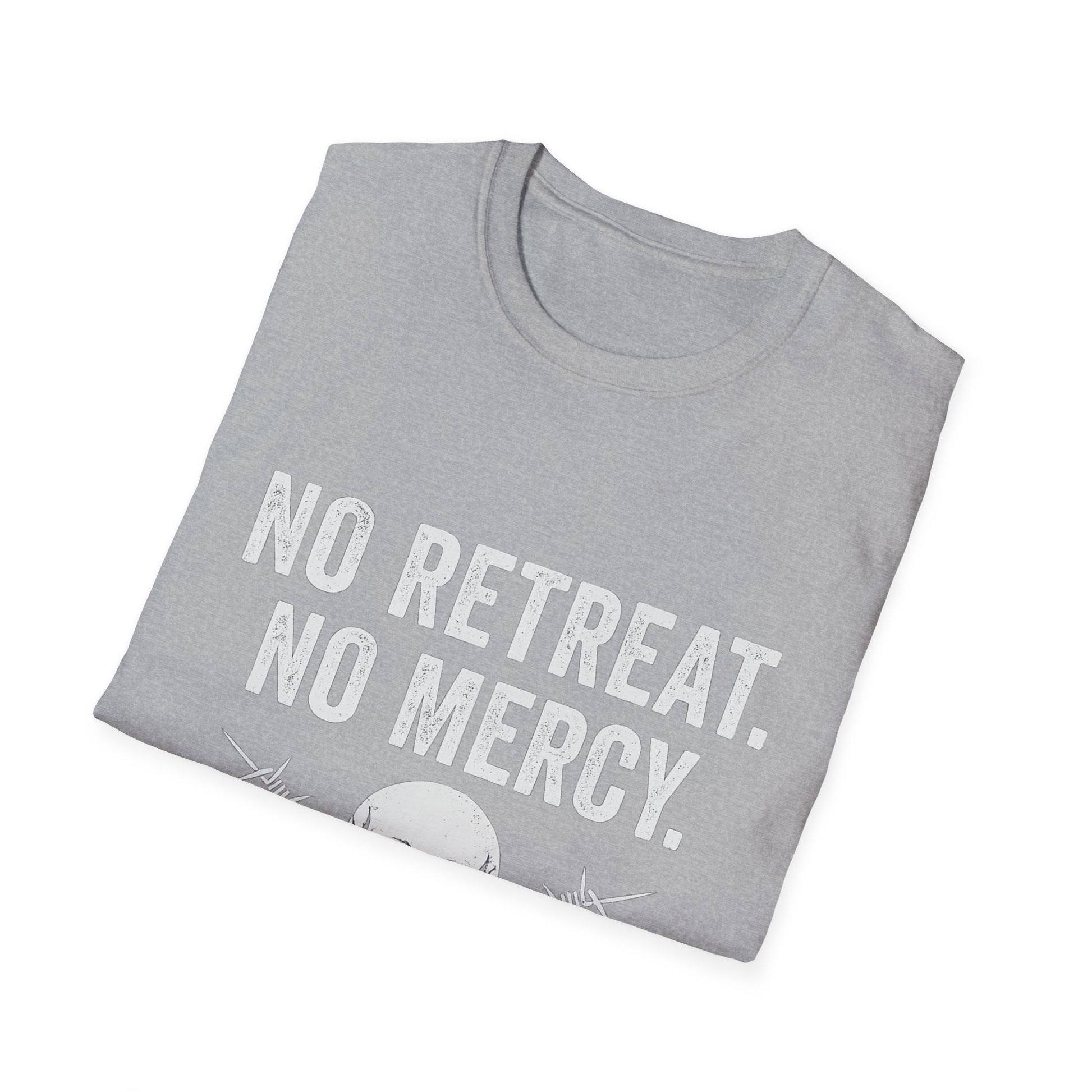 No Retreat, No Mercy Unisex T-Shirt - Motivational Tee, Gift for Fitness Enthusiasts, Casual Wear, Graphic Shirt, Inspiring Apparel