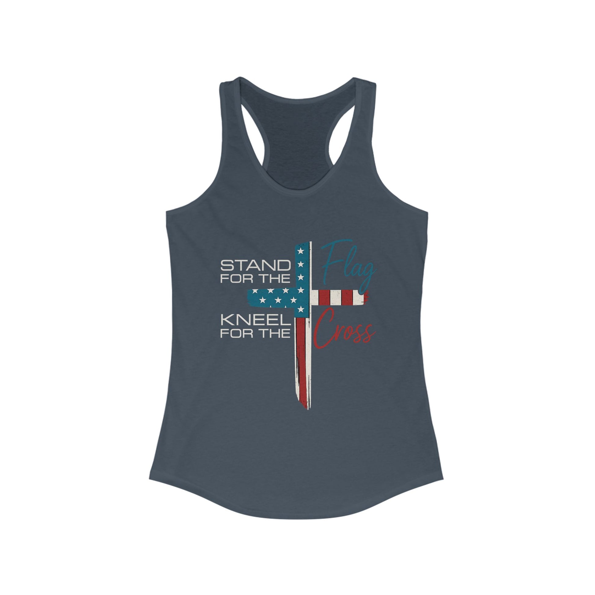 Patriotic Women's Racerback Tank | Stand for the Flag & Cross | Perfect for Independence Day, Memorial Day, or Everyday Wear
