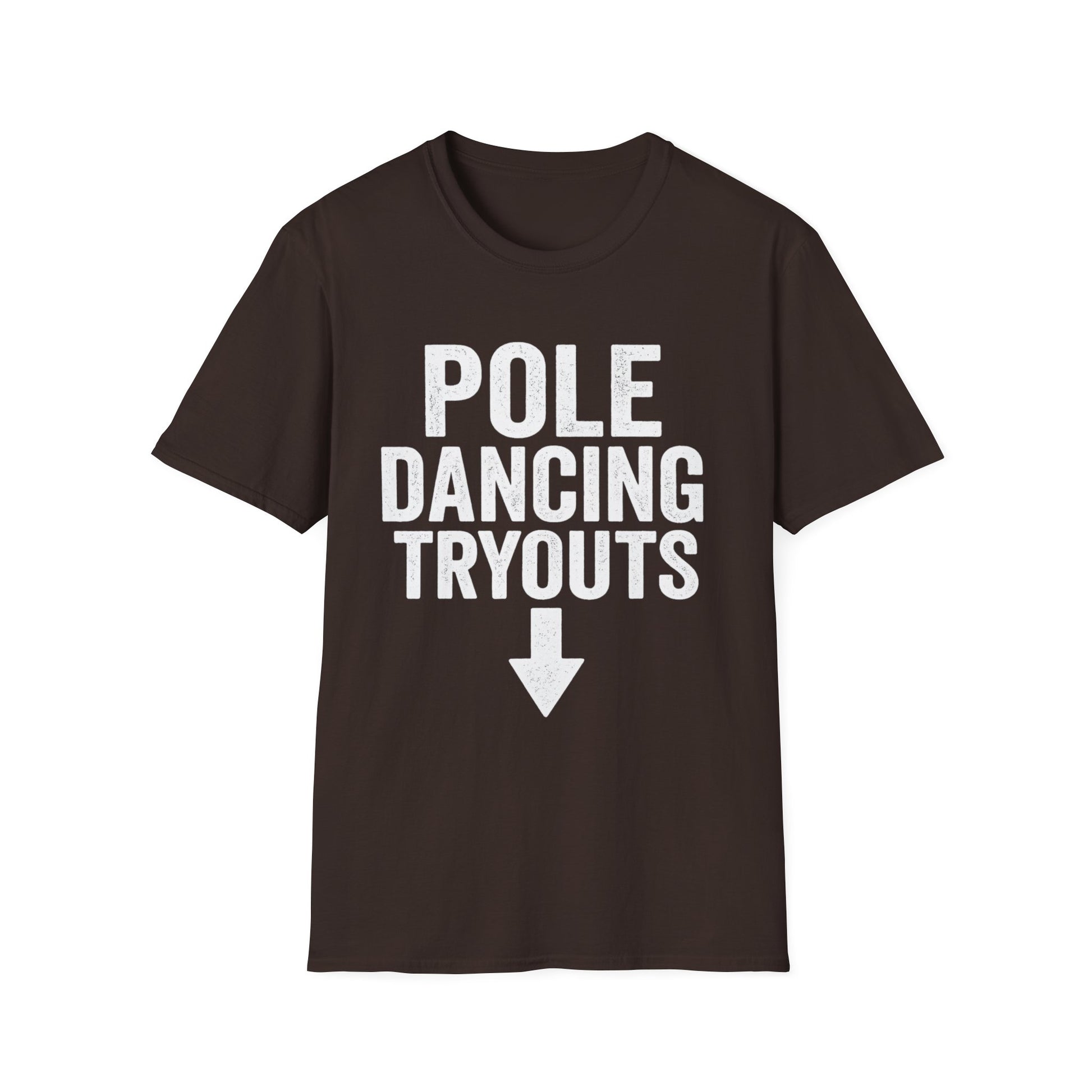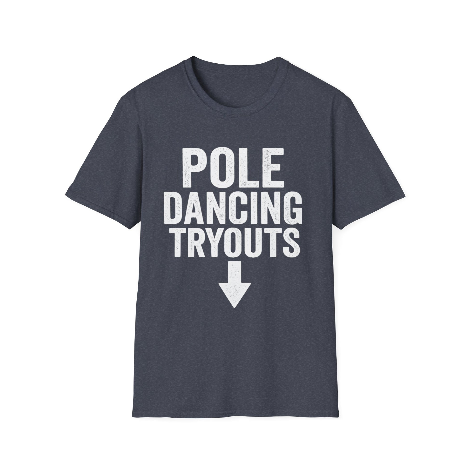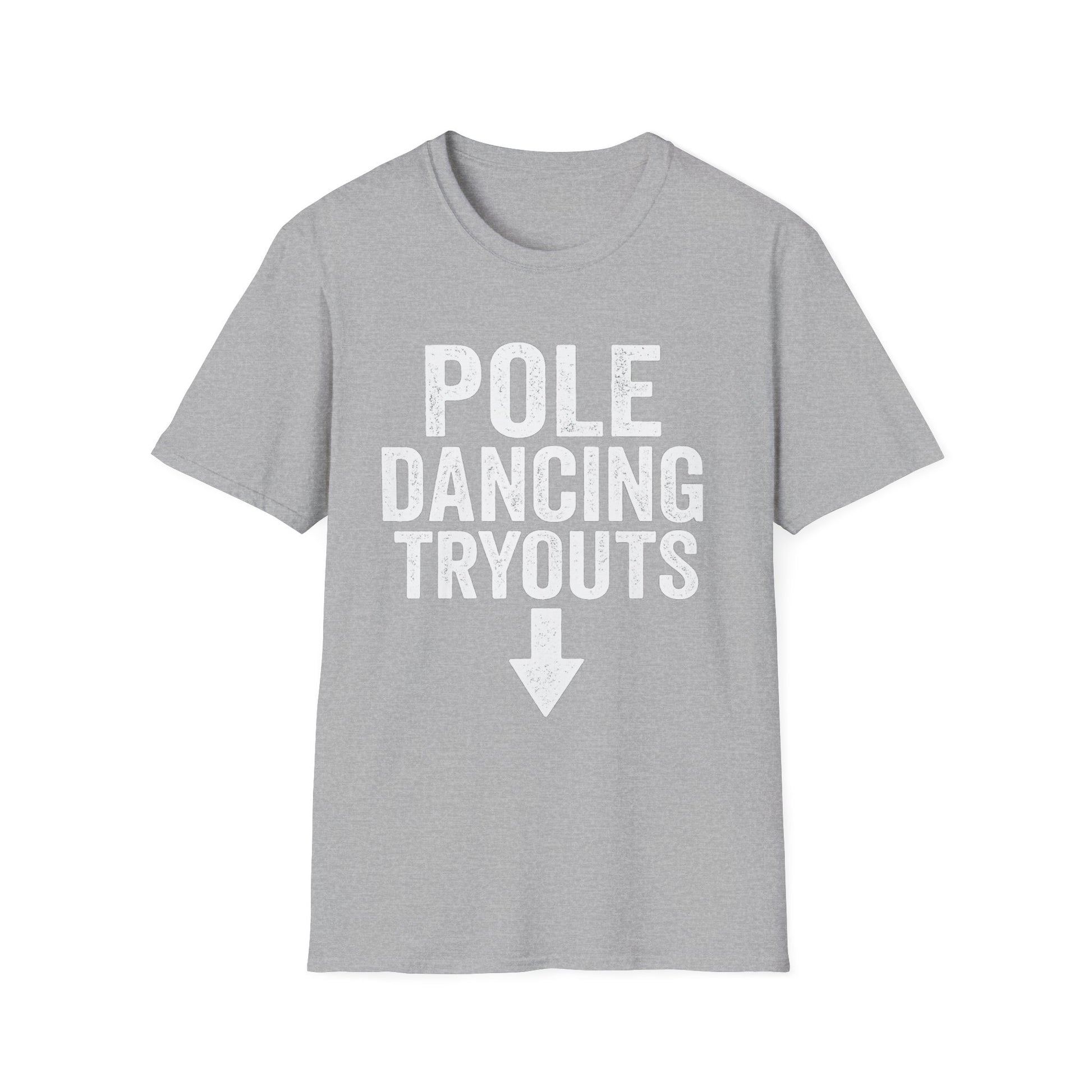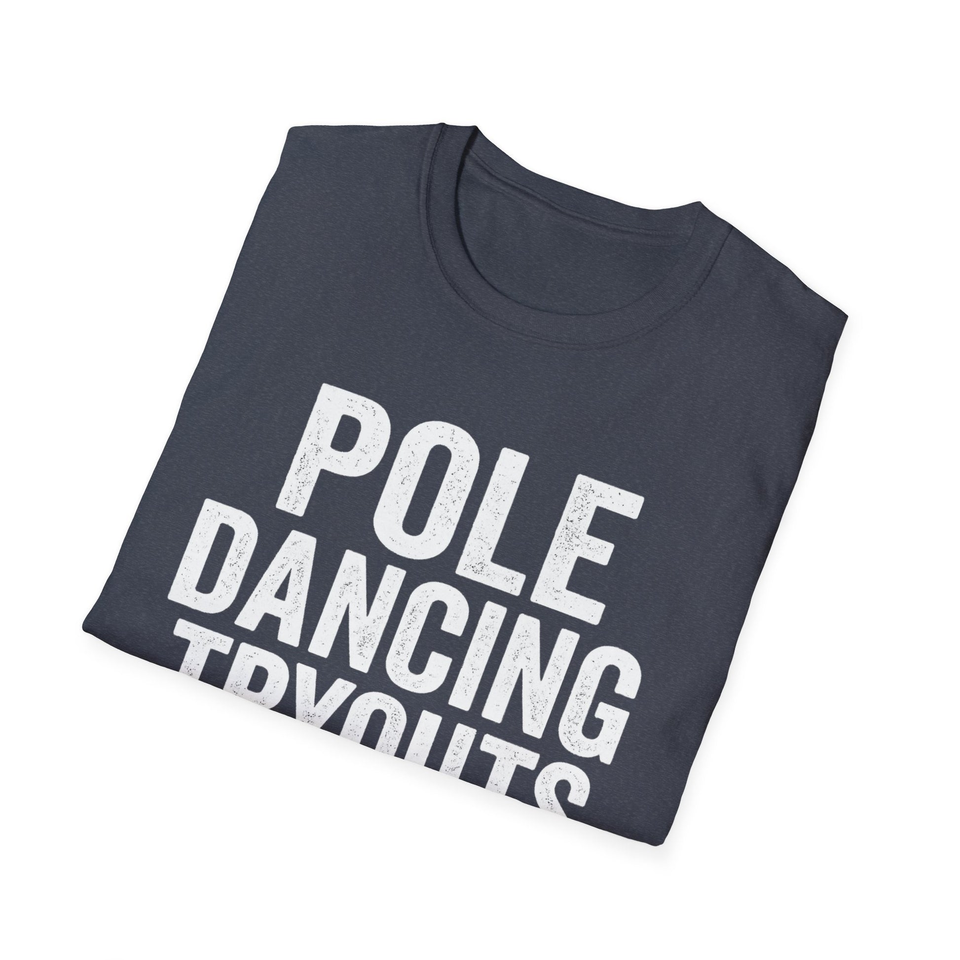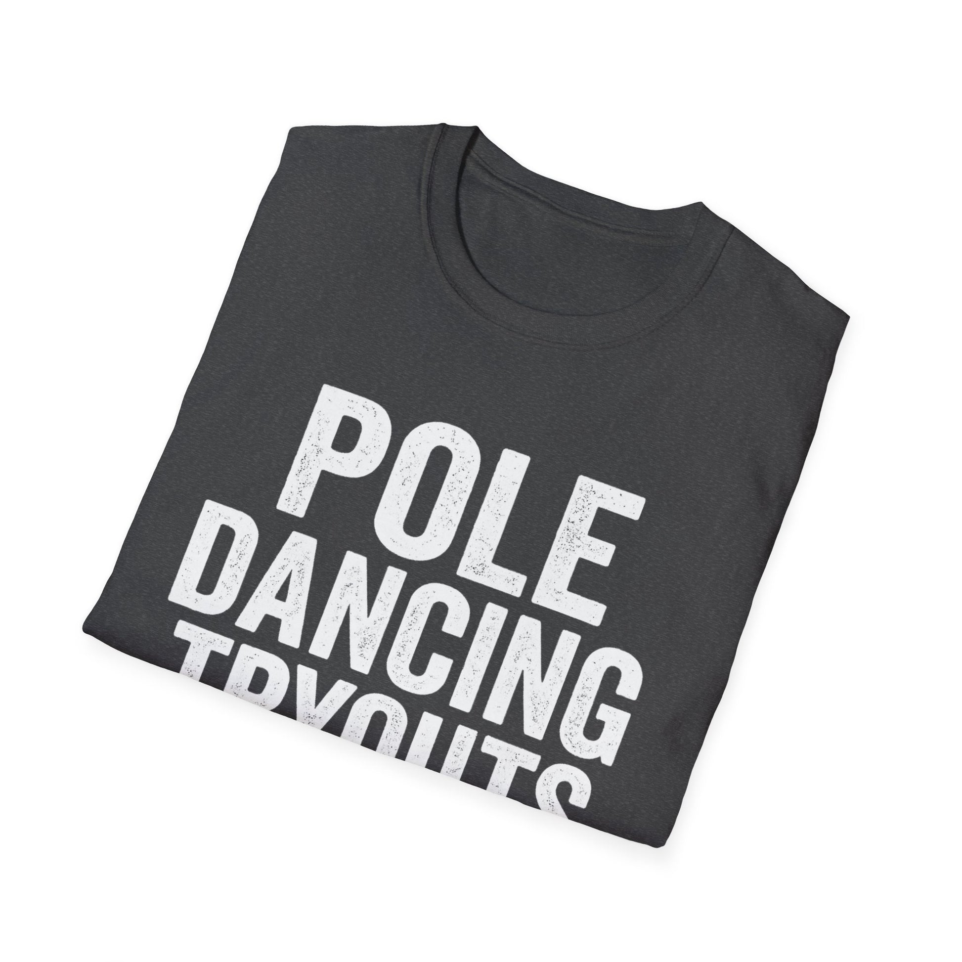 Pole Dancing Tryouts Unisex Softstyle T-Shirt, Fun Workout Tee, Fitness Gift, Dance Class Shirt, Gym Apparel, Sporty Outfit