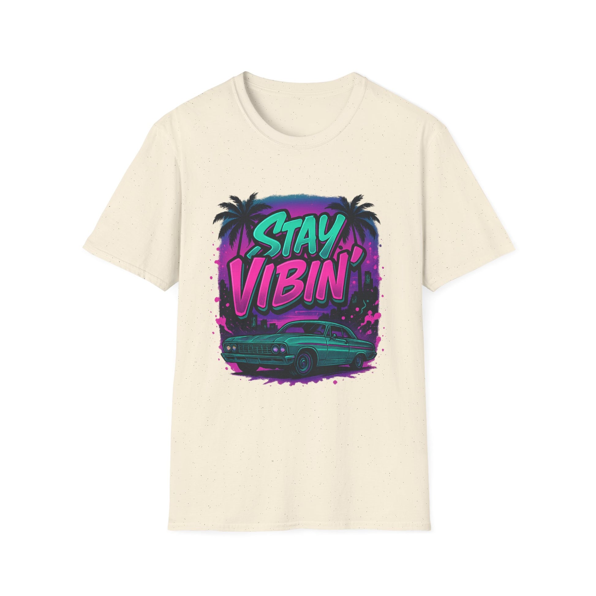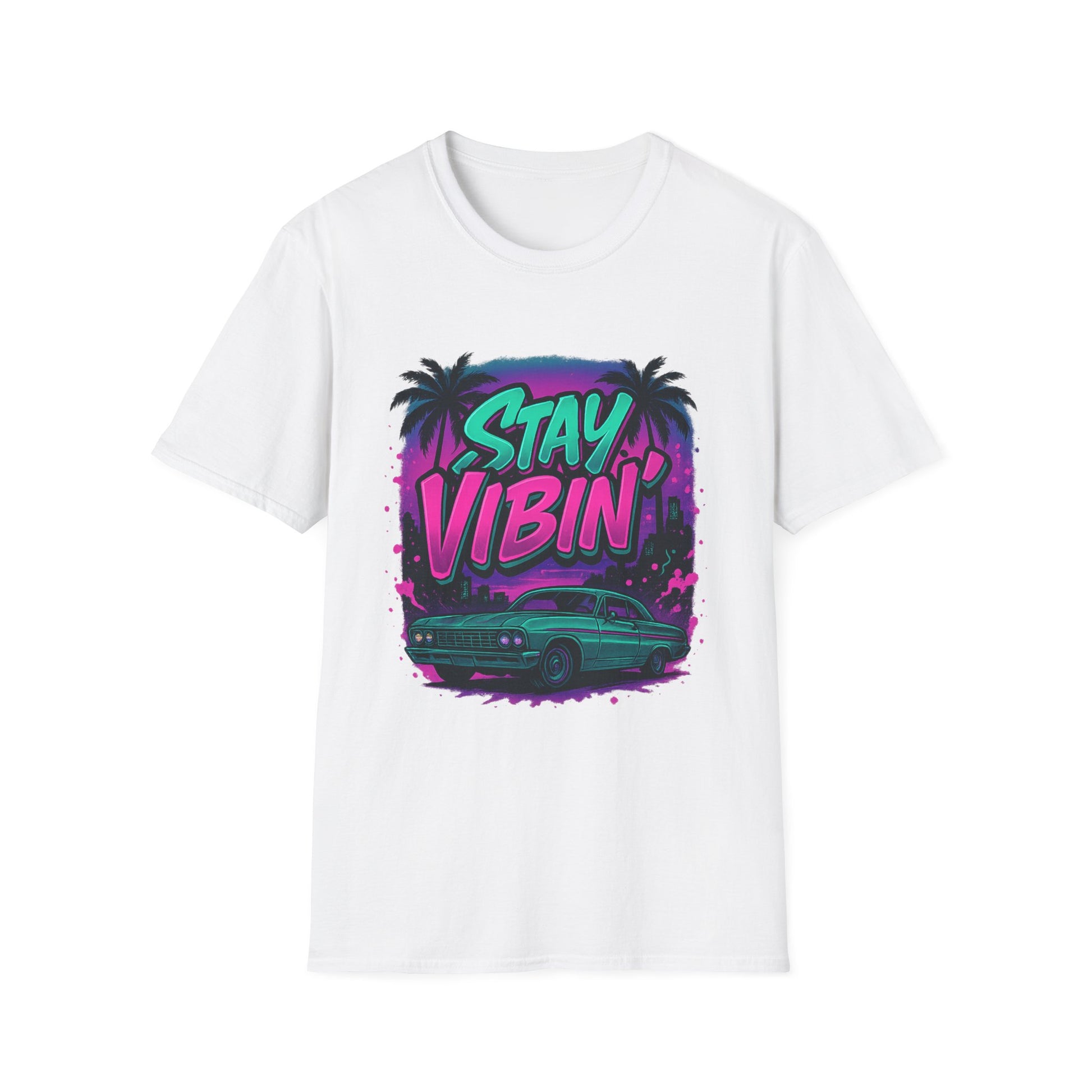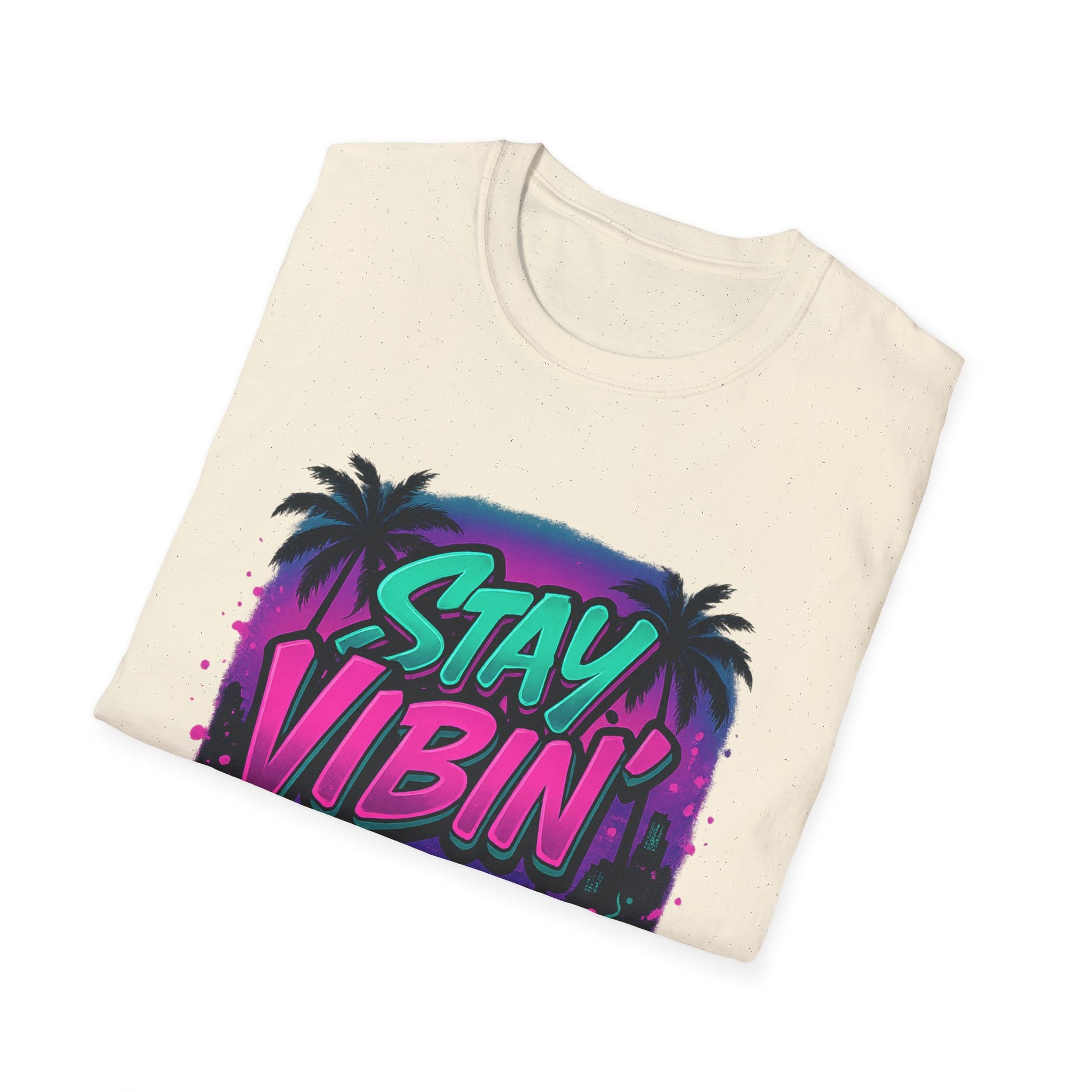 Stay Vibin' Unisex Softstyle T-Shirt, Retro Summer Tee, Cool Graphic Shirt, Gifts for Him, Beach Party Apparel, Casual Wear