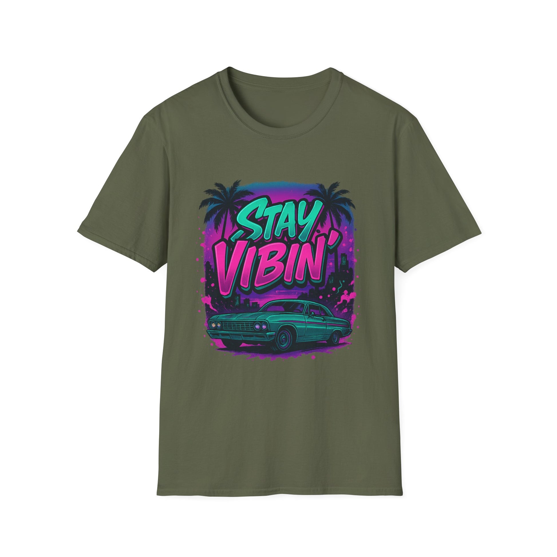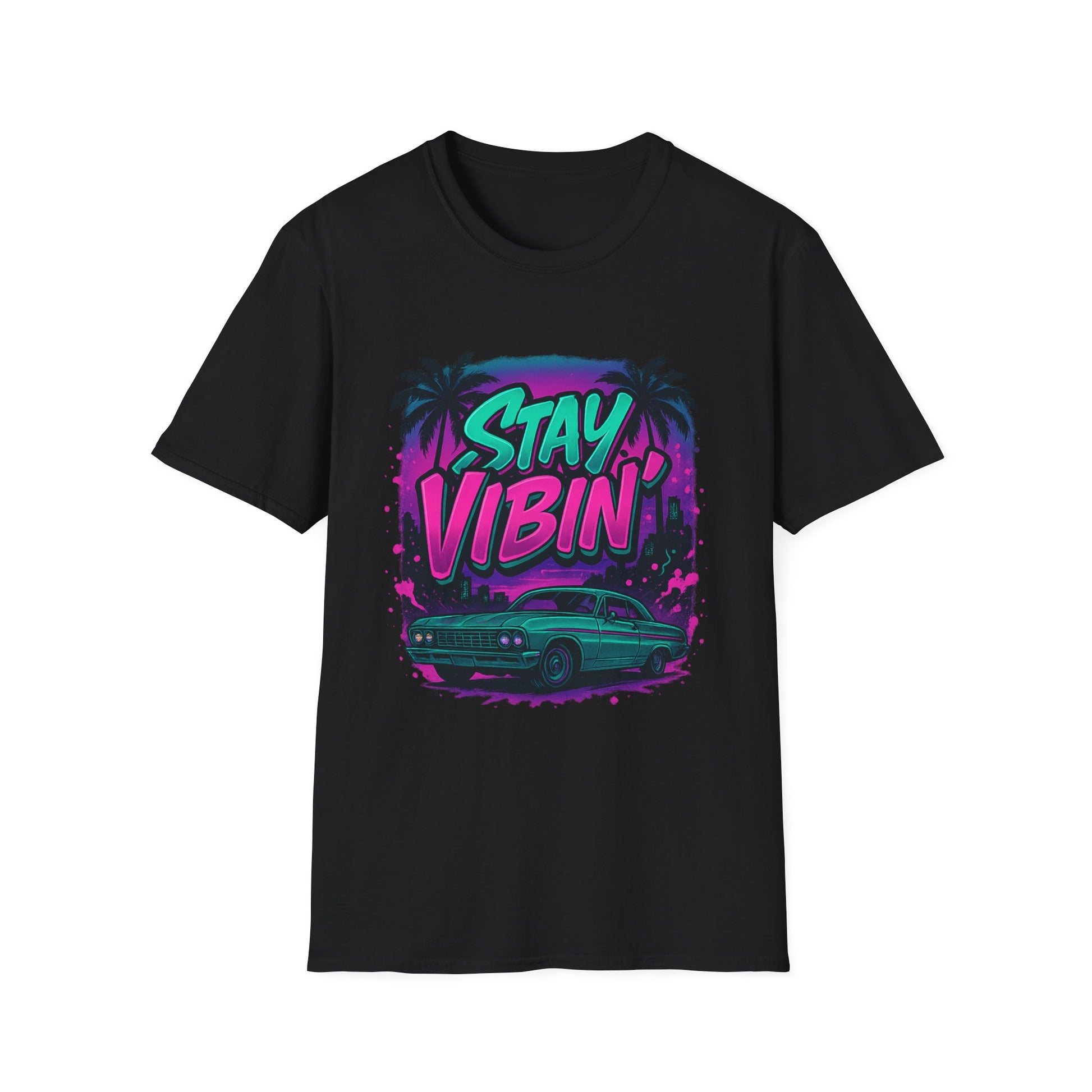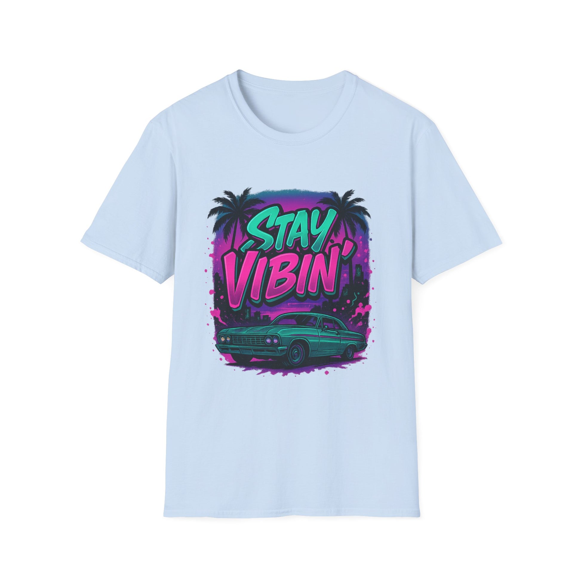 Stay Vibin' Unisex Softstyle T-Shirt, Retro Summer Tee, Cool Graphic Shirt, Gifts for Him, Beach Party Apparel, Casual Wear