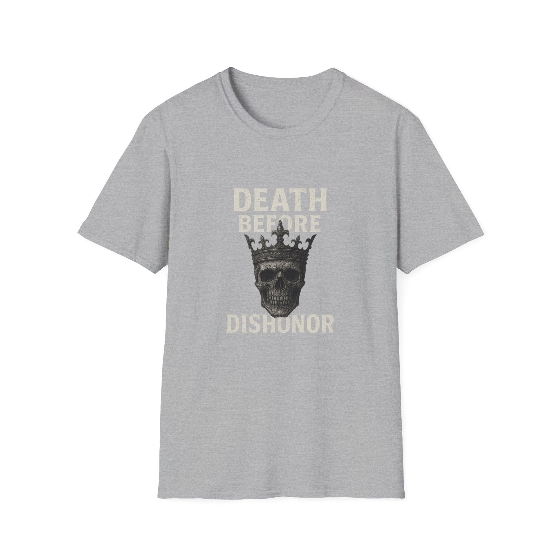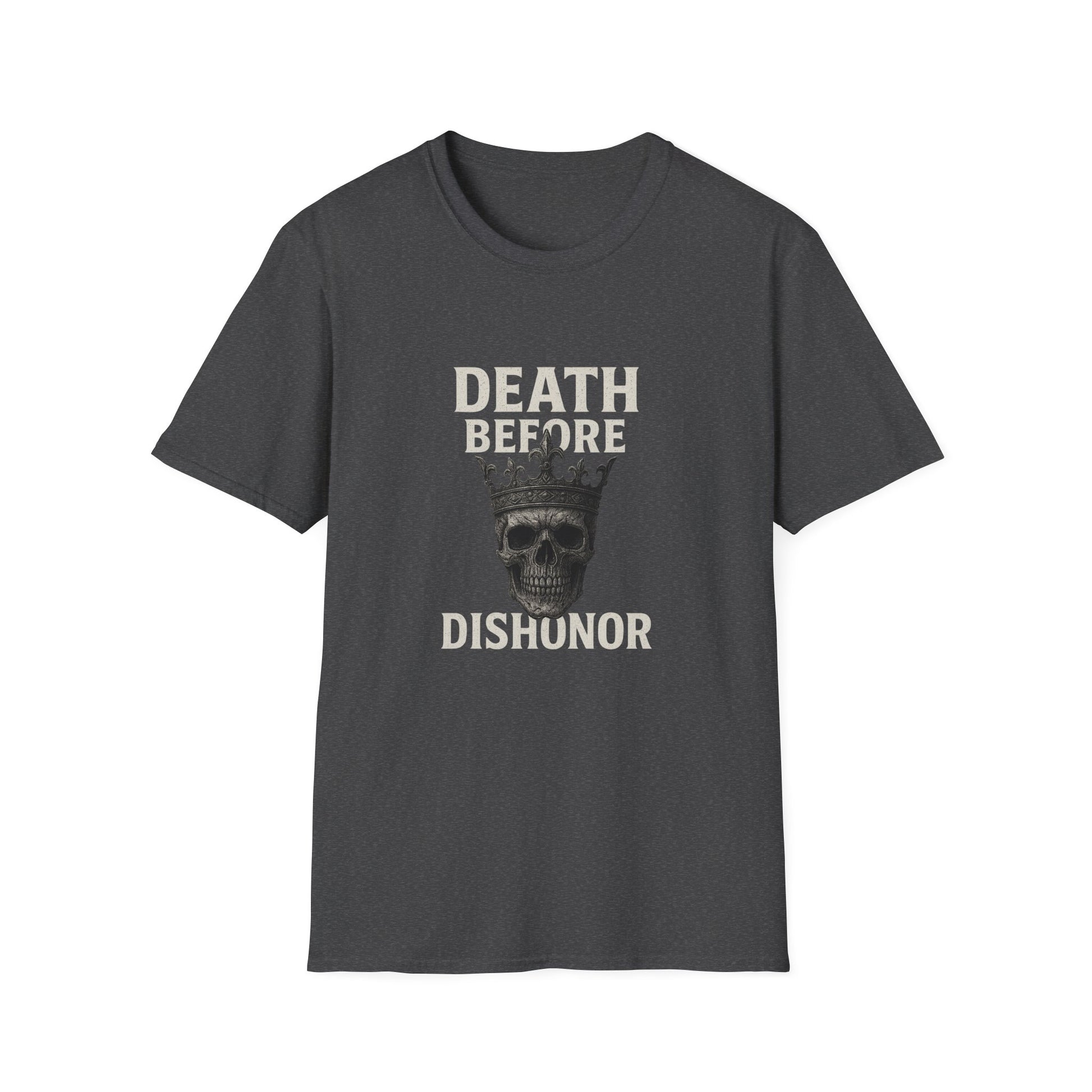 Unisex Skull Graphic T-Shirt - Death Before Dishonor, Casual Wear, Gift for Rebels, Halloween Costume, Unique Statement Tee