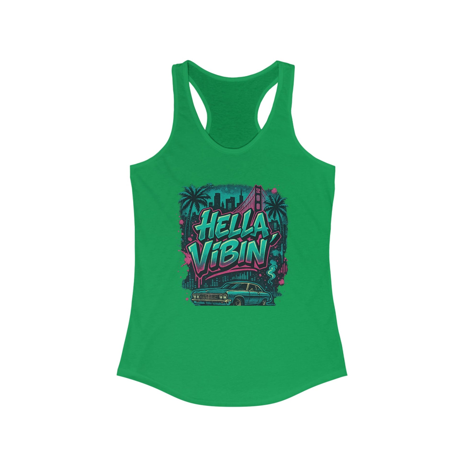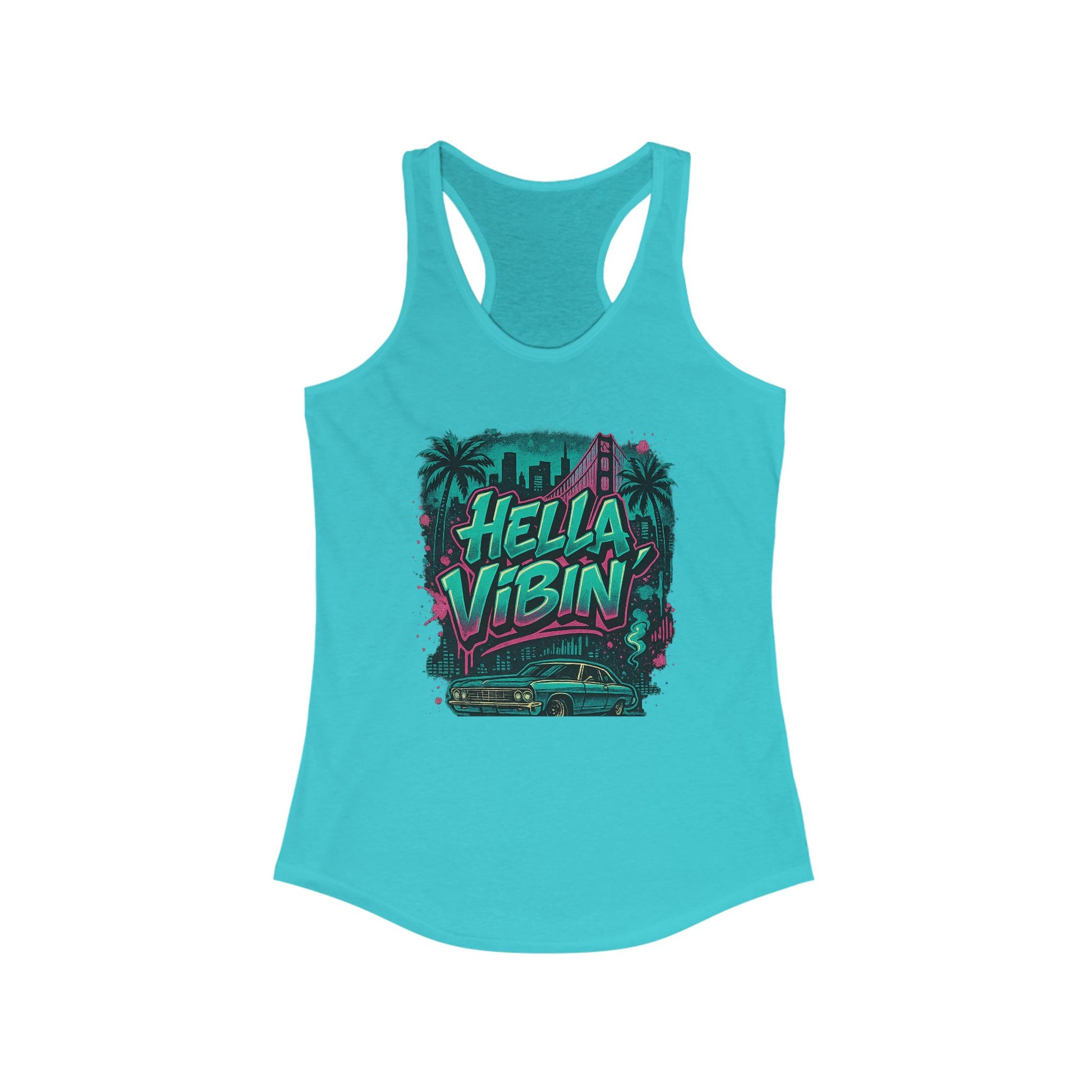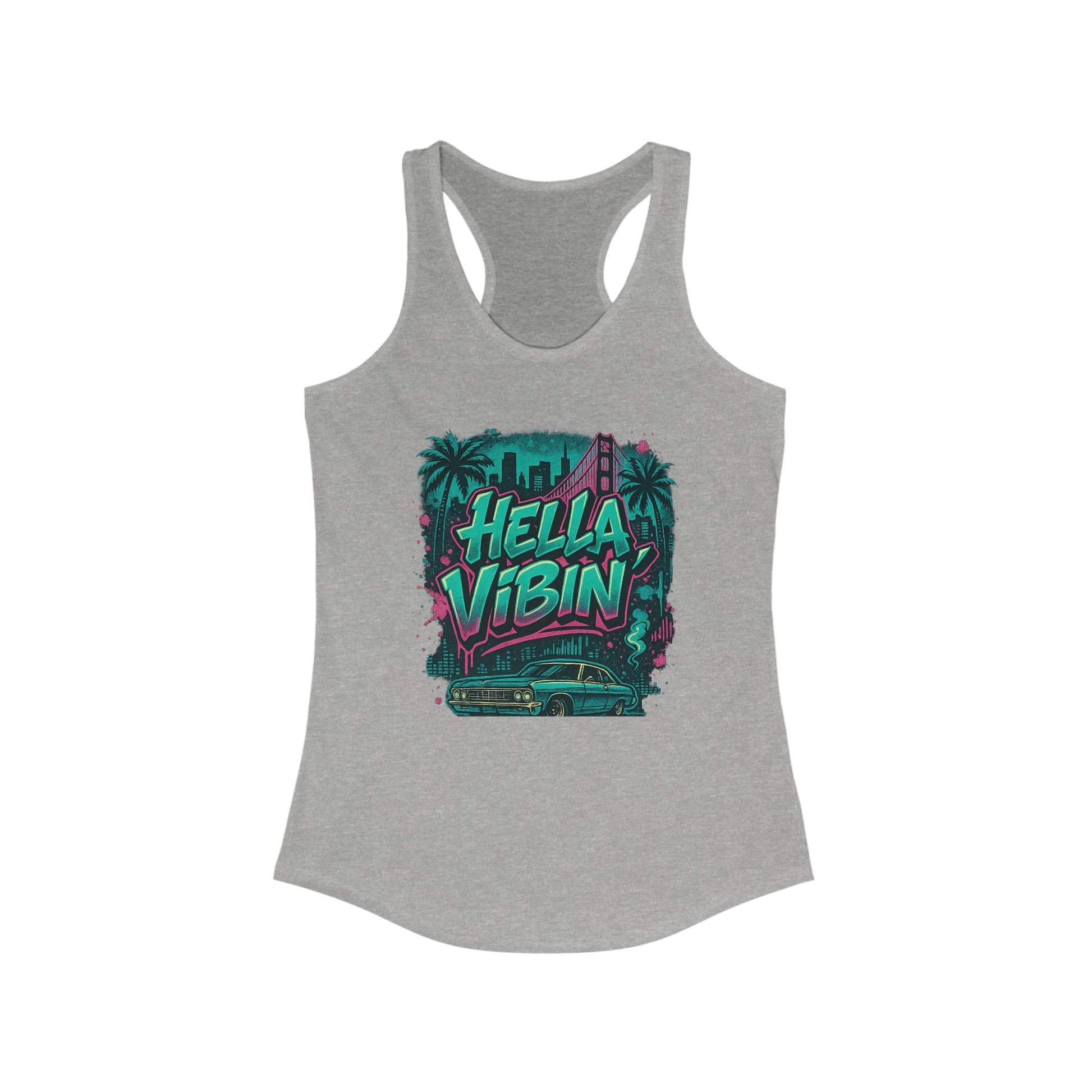 Vibrant Women's Racerback Tank Top - Hella Vibin' Graphic Tee, Summer Wear, Beach Outfit, Festival Apparel, Gift for Her